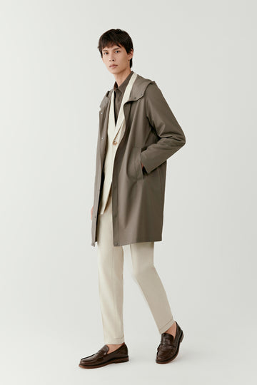 Trench à capuche en laine et soie