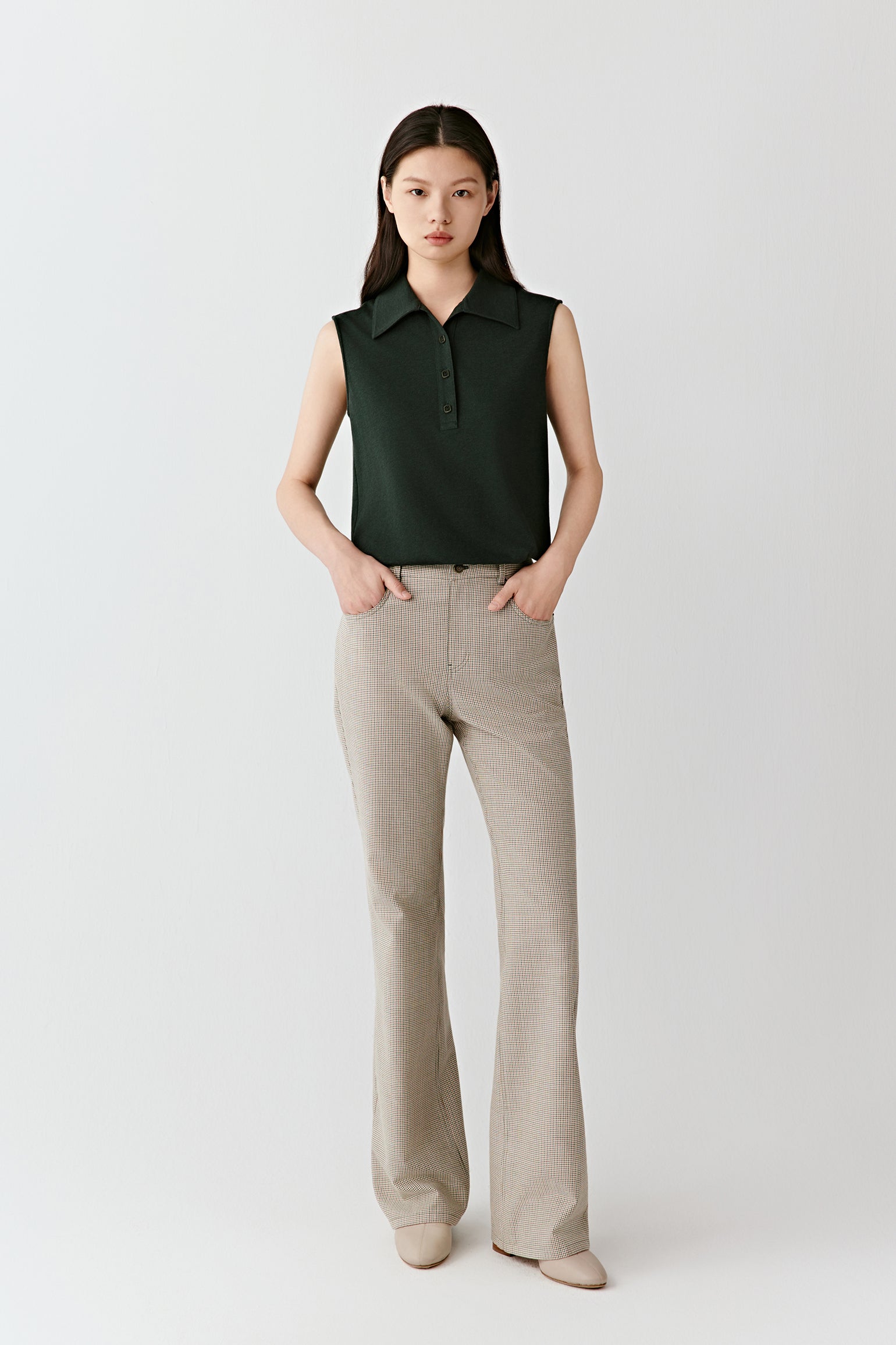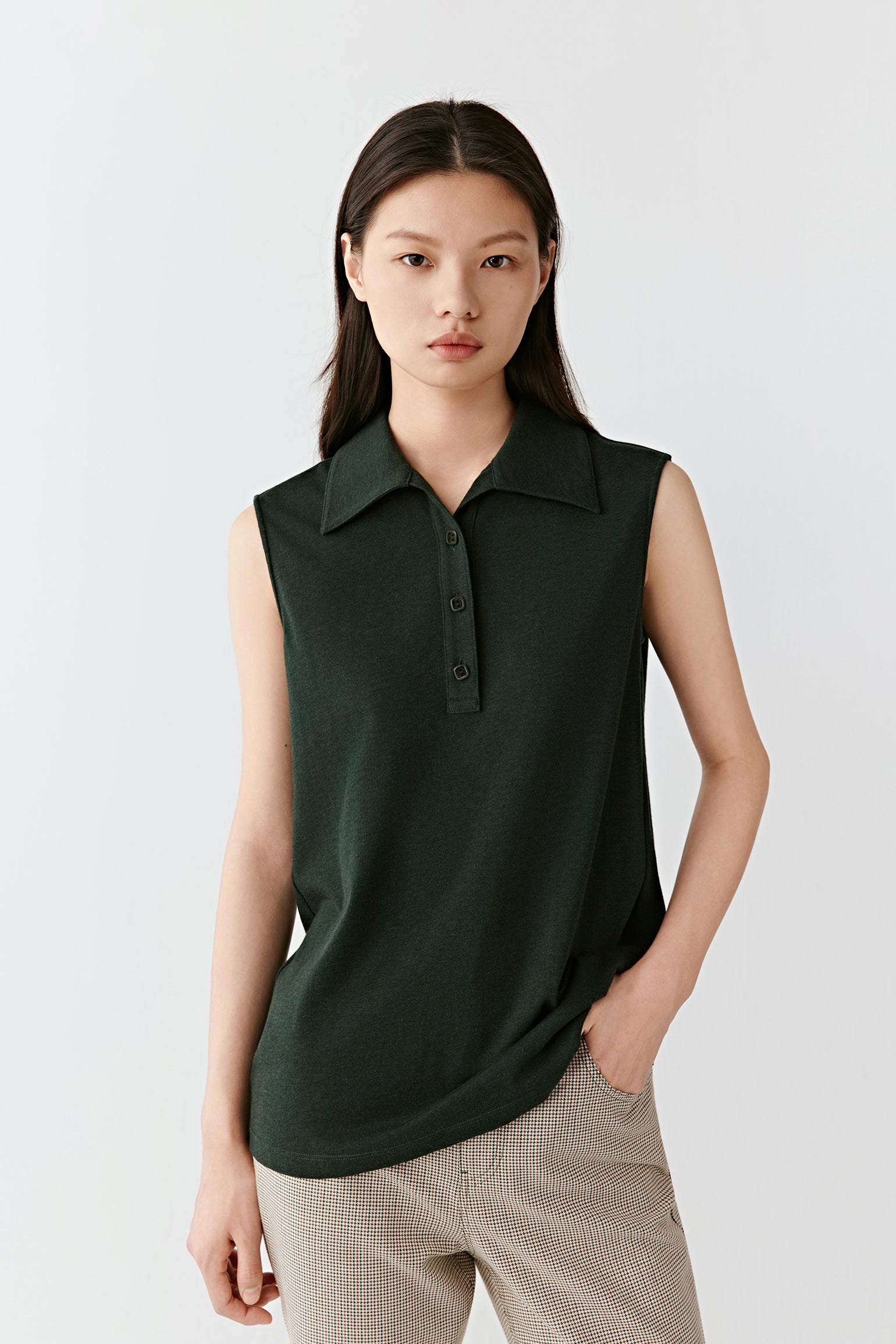 Sleeveless Polo Top in Cotton, Wool and Silk