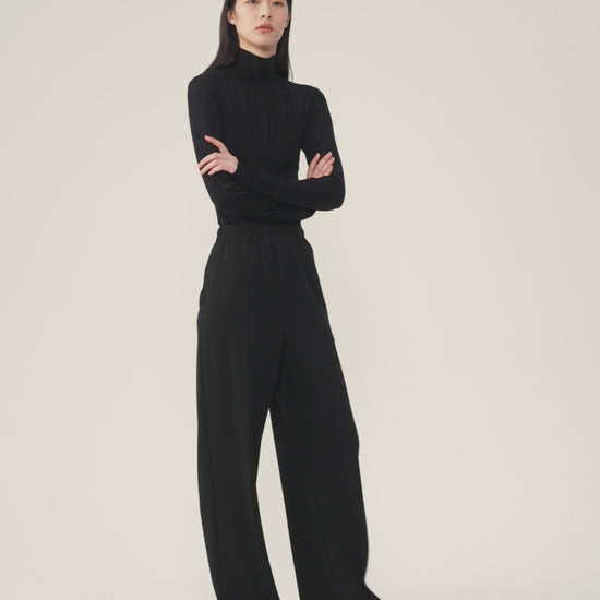 Crafted from natural brushed wool jersey, these straight-leg trousers offer softness, comfort and freedom of movement. Designed with an elasticated waistband and clean lines, they reflect a timeless, understated aesthetic.