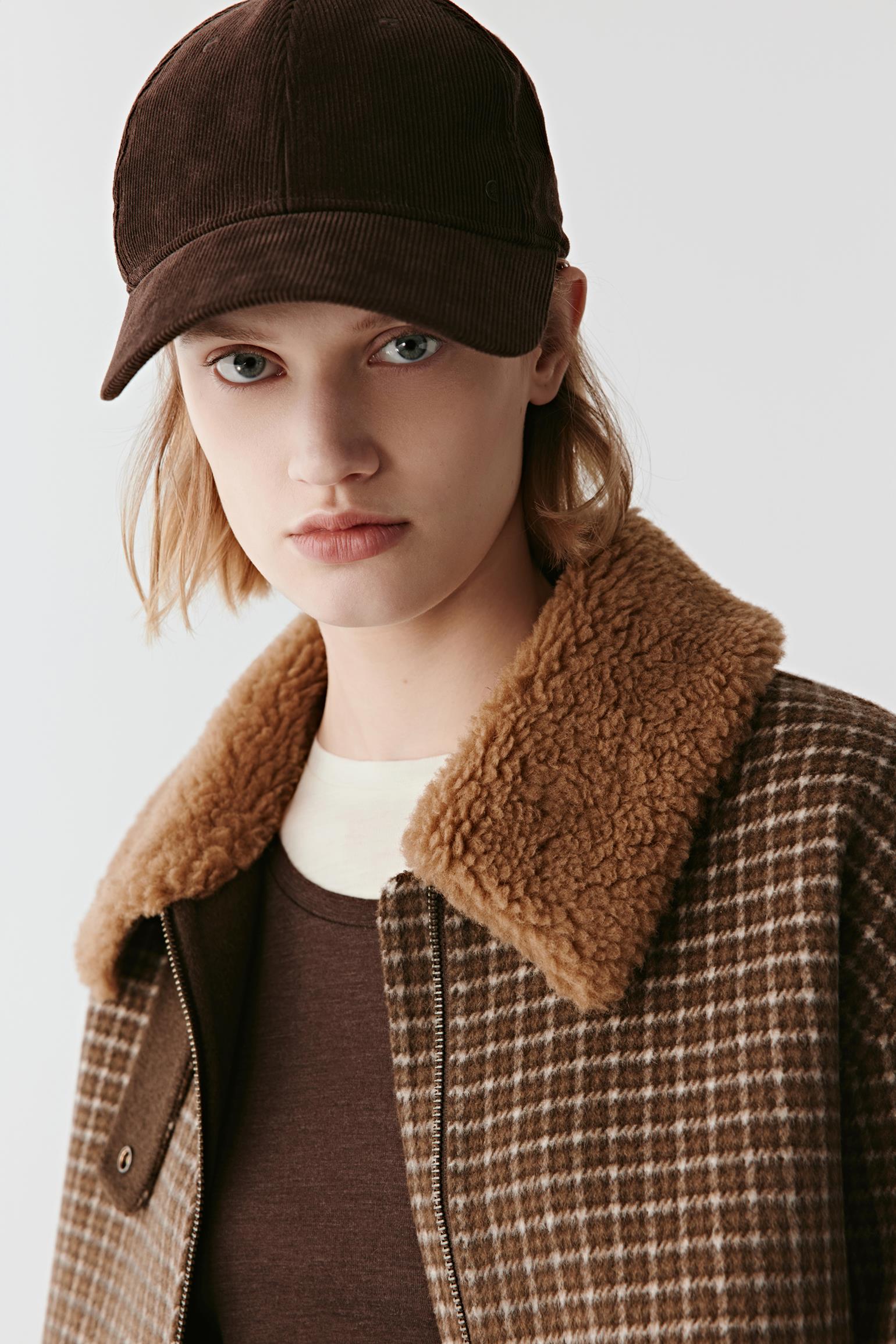 Confectionnée dans un tissu de laine double face à motif carreaux, cette veste associe structure et chaleur naturelle. La surface tissée révèle un dessin équilibré, apportant profondeur et texture visuelle à la silhouette.